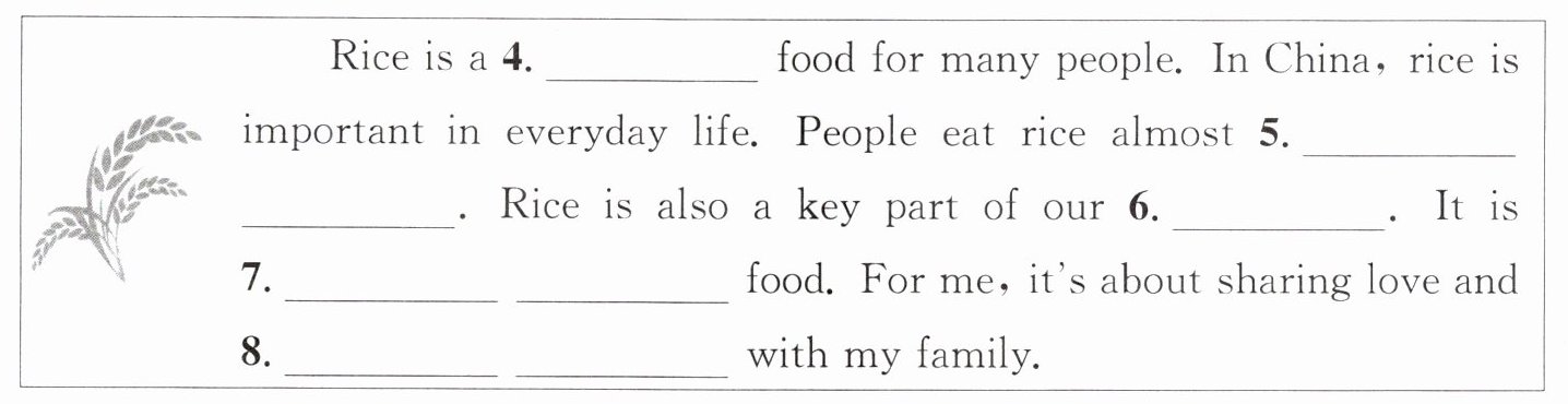 9*. One possible version: It means that eating rice helps us feel close to our family. It also helps us remember where we come from.