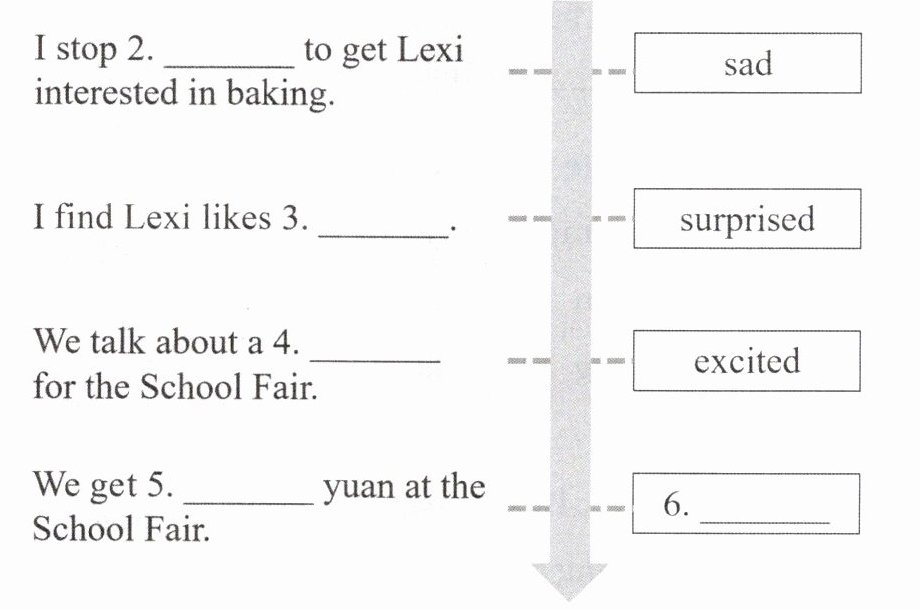 When the day of the School Fair comes, we are excited but a bit nervous at first. Later, some teachers and students come to the stand and say, “Nice posters!” Lexi nods to them, “The cakes are nice too. Try some!” Then there are more people coming to buy our cakes. In the end, we have 150 yuan.