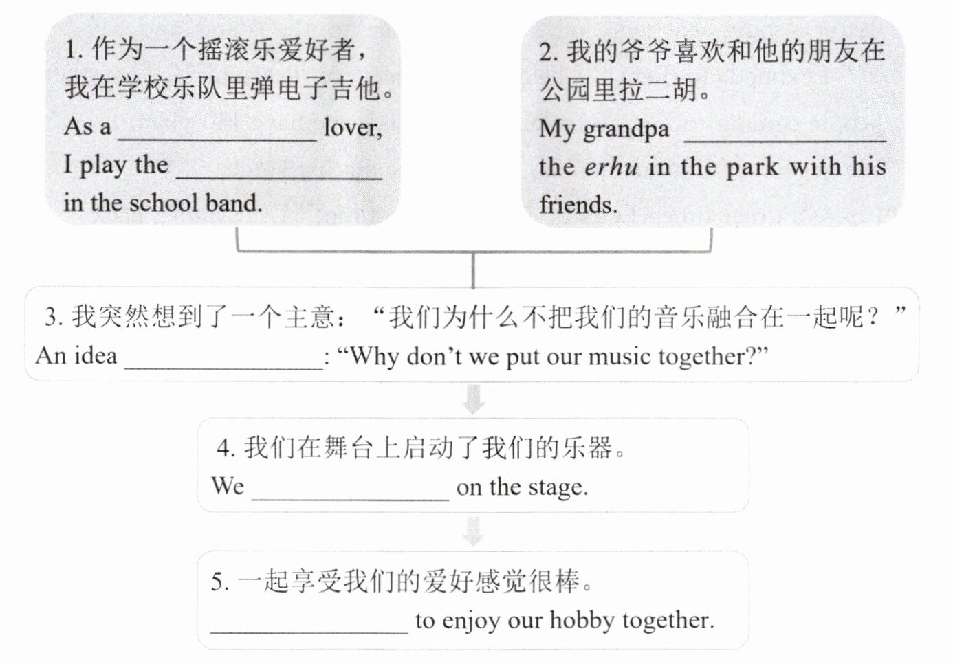 Ⅲ.1.rock music; electric guitar 2.likes/loves playing/to play 3.suddenly hits me 4.fire up our instruments 5.It feels great