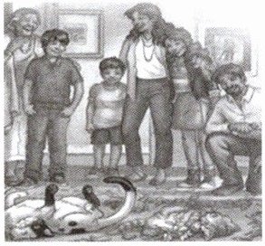 "This might be a catnip(猫薄荷)! It makes cats excited!" my mom says, picking up a leaf. She is the first to giggle. Then Abuela and my dad start laughing too. Finally Ollie and I join in.