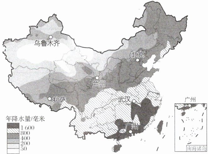 各大城市在推出“共享单车”之后,又推出了“共享雨伞”。读我国年降水量分布图,完成第4~5题。