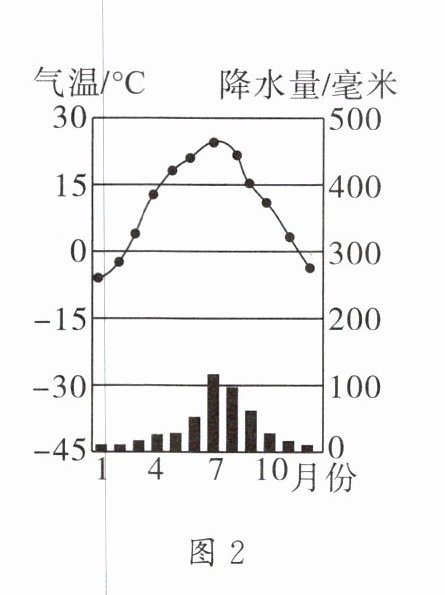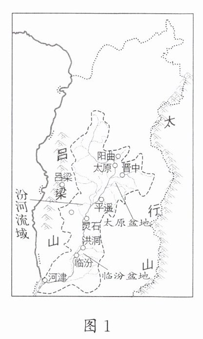 (3)题,根据图1可知,汾河的流向为自东北向西南。根据图2可知,汾河流经地区夏季高温多雨,冬季寒冷干燥,属于温带季风气候。第
