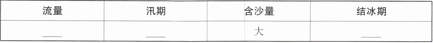 (4)题,根据以上分析并结合所学知识可知,降水影响河流流量和汛期,植被覆盖率影响含沙量,气温影响结冰期,地形影响流速,因此影响汾河水文特征的主要因素有降水、植被覆盖率、气温、地形等。第