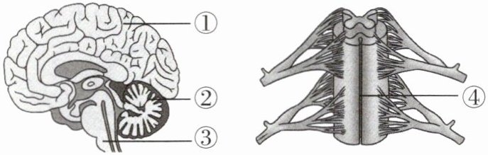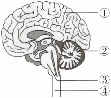 A 【解析】大脑皮层是调节人体生命活动的最高级中枢,具有调控感觉(如视觉、听觉等)、运动、语言交流等多种生命活动的功能区——神经中枢,因此,控制泳姿变化及感受泳池水温变化的是①大脑。②小脑的主要功能是协调运动,维持身体平衡。③脑干中有些部位专门调节心跳、呼吸等人体的基本生命活动。