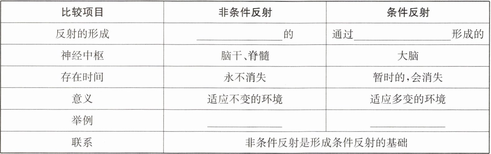 生来就有 通过学习和训练 膝跳反射 “望梅止渴”