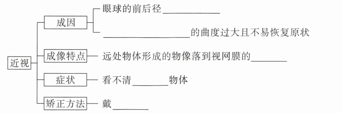 1.过长 角膜、晶状体 前方 远处 凹透镜