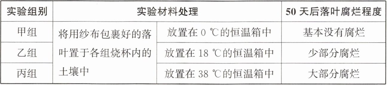 (3)进一步分析:除该实验探究因素外,影响微生物对落叶分解速度的非生物因素还可能有