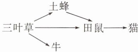 D 【解析】养猫可以使田鼠的数量减少,三叶草的数量因为天敌田鼠的数量减少而增加,从而使牛获得更多的食物。由题图可知,和三叶草之间有捕食关系的有土蜂、田鼠和牛,猫和三叶草之间不存在捕食关系。