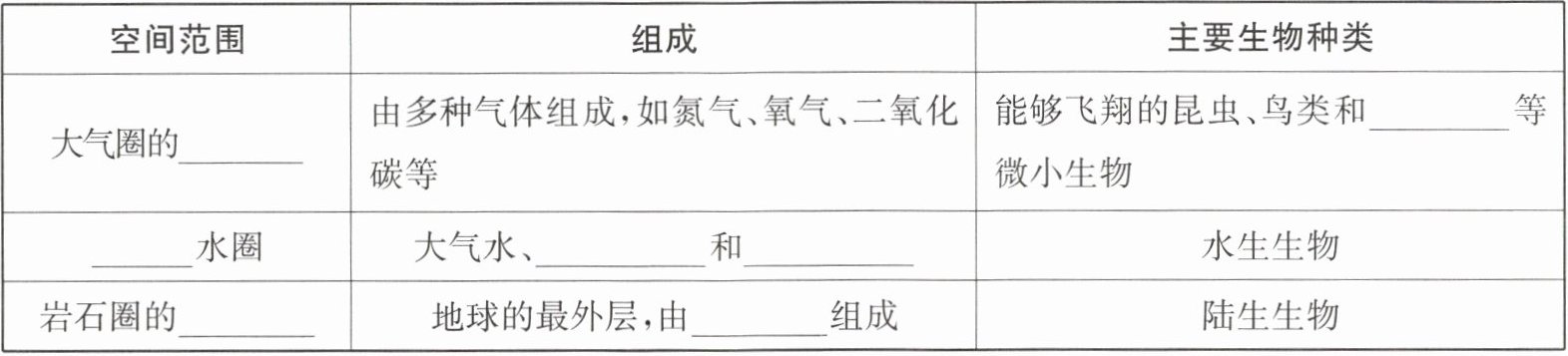 的总和就是生物圈,厚度大约 20 千米。2. 生物圈的组成