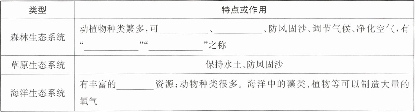 涵养水源 保持水土 绿色水库 地球之肺 藻类 淡水 净化水质 地球之肾 人类