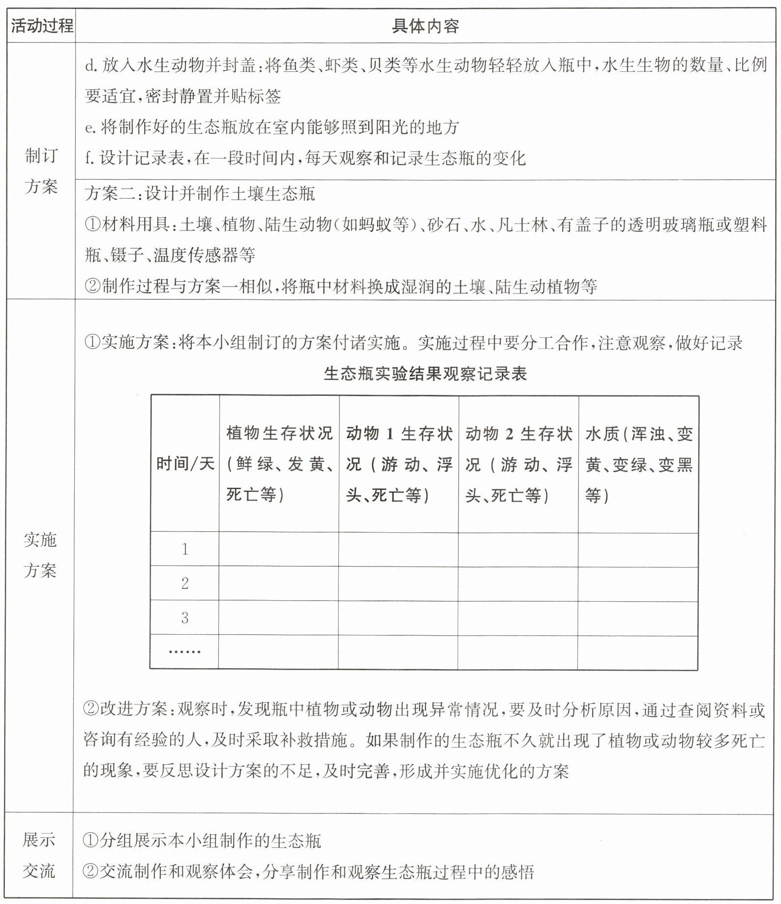 1. 初步学会设计并制作生态瓶,同时坚持对生态瓶进行管理和观察。