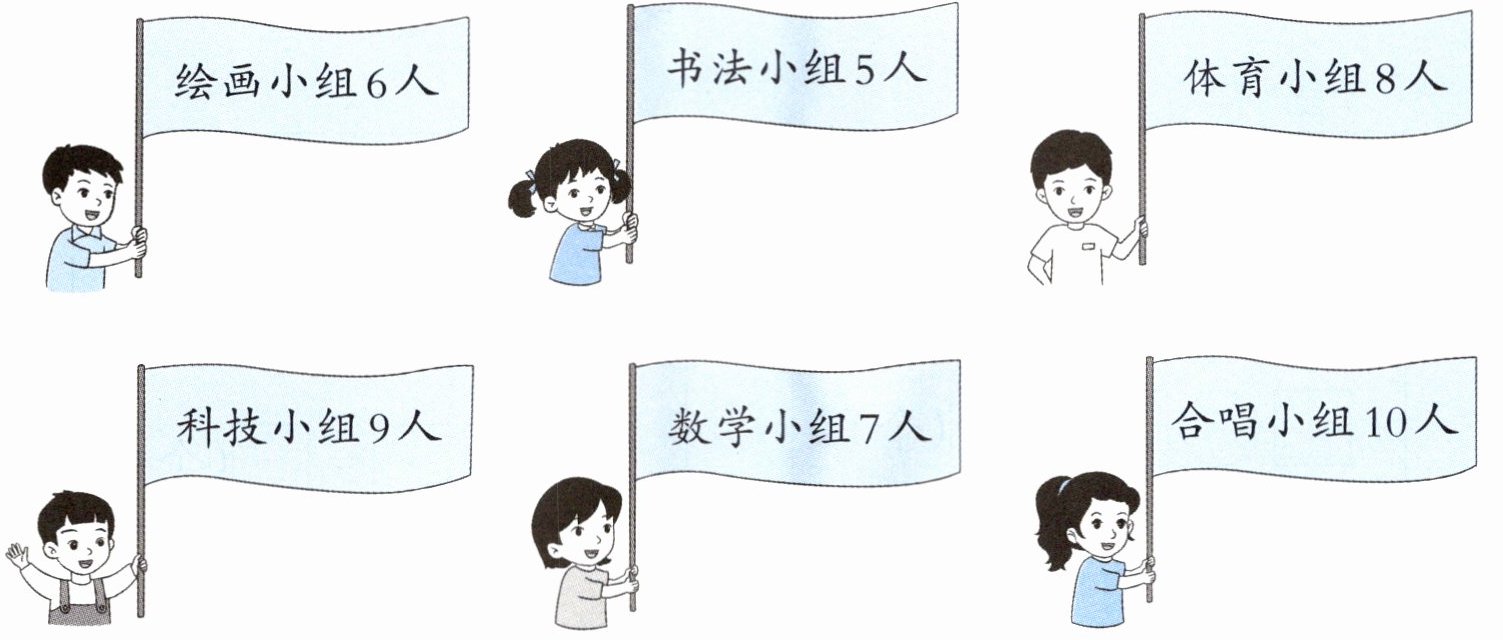 书法小组(5人)和合唱小组(10人):5 + 10 = 15人