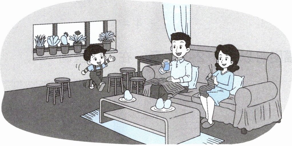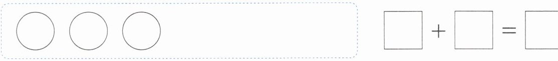 (2)(答案不唯一)桌子上一个盘子里有1个梨,另一个盘子里有2个梨,一共有3个梨。 1+2=3