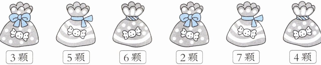 (1)从左边数,第( )袋糖数量最多,有( )颗。