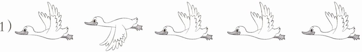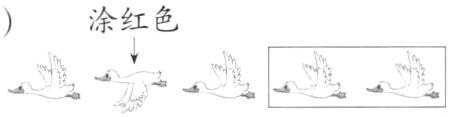 ①从左边数,给第 2 只大雁(yàn)涂上红色;从右边数,圈出 2 只大雁。