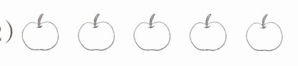 ①从左边数,给第 4 个苹果涂上红色;从右边数,给第 4 个苹果涂上黄色。