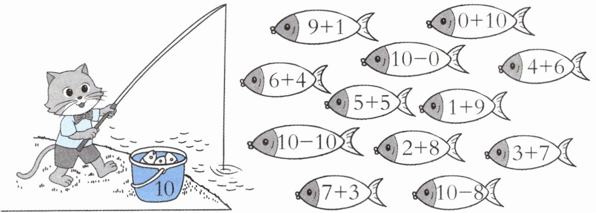 圈出的算式为:9+1、0+10、10-0、4+6、6+4、5+5、1+9、2+8、3+7、7+3。