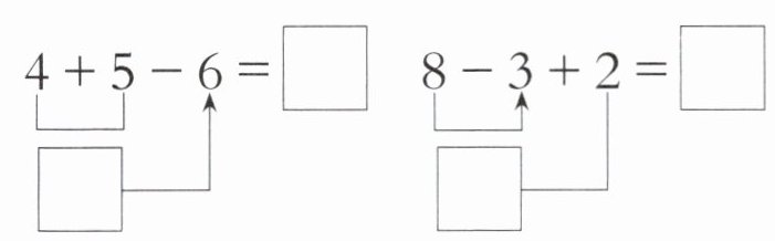 $\frac{4+5-6= □}{□}$ $\frac{8-3+2= □}{□}$