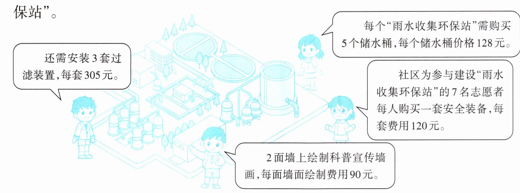 答:每个“雨水收集环保站”购买过滤装置需要915元。