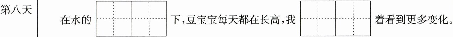 | | 第一天 | 我把豆子 放入盆中,加水6小时后,它们慢慢变大了, ( )。 |