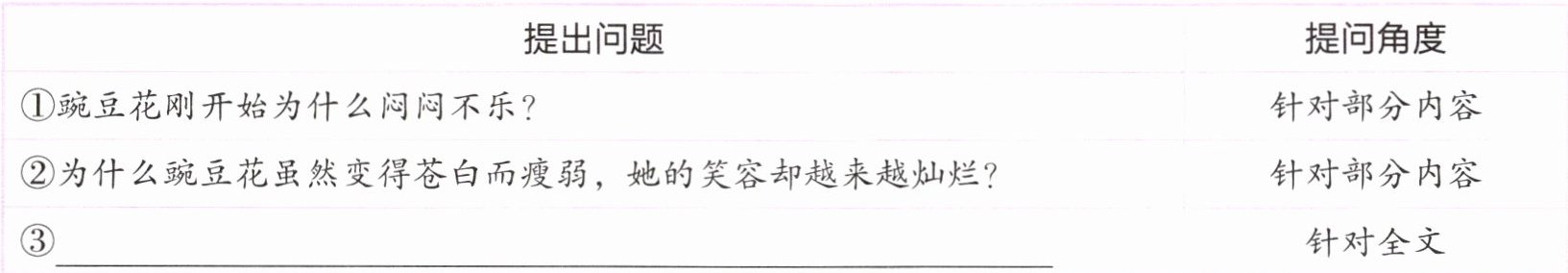 )→豌豆花落入泥土中,不见了踪影。2. 阅读短文,先补充问题清单,再按要求完成练习。