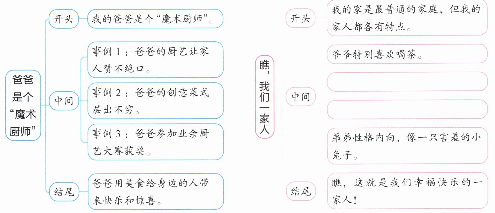 仿照语段,围绕关键句,选择最能反映人物特点的具体事例,凸显家人特征。