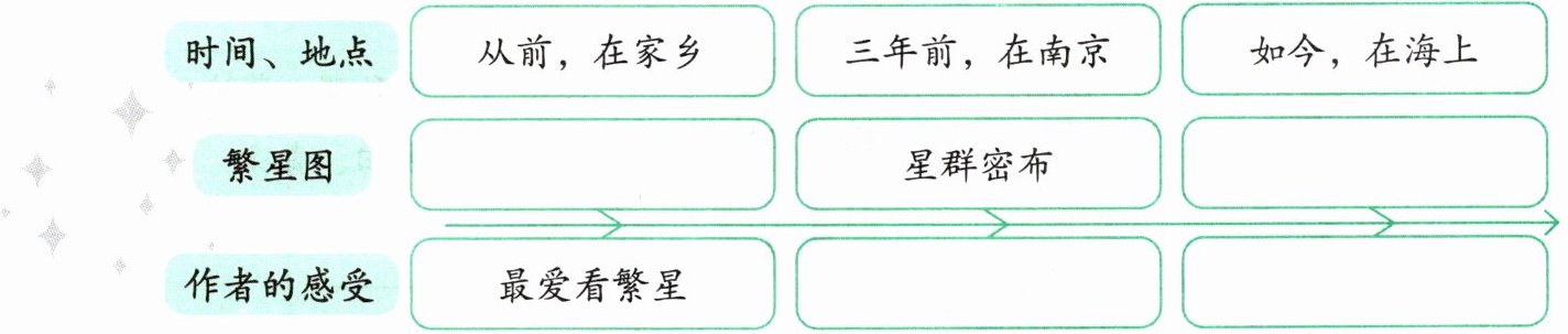 6.课文讲述了作者三次看繁星的感受,请你完成下面的导图并填空。
