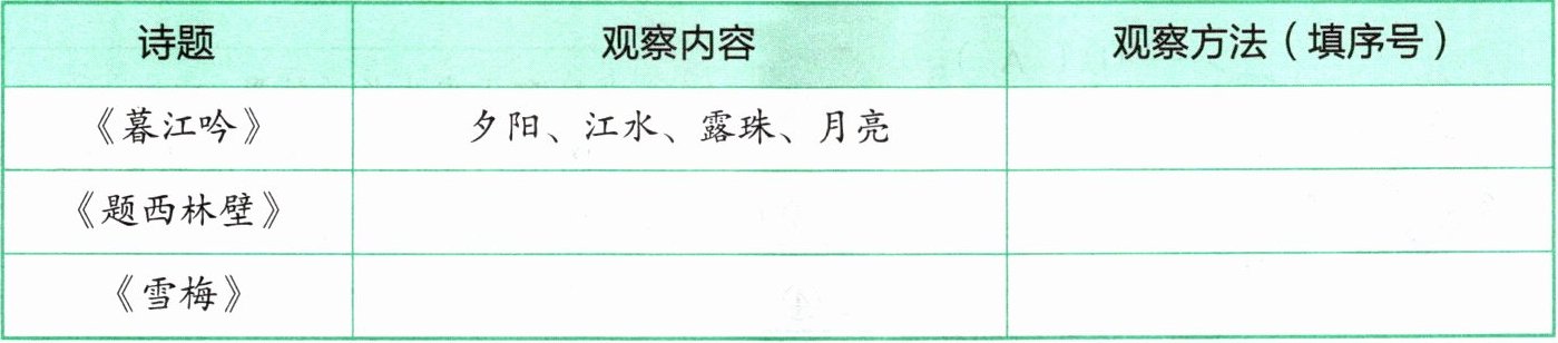 5. 对比阅读三首古诗,填写下面的观察档案。