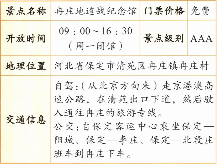 |景点名称|冉庄地道战纪念馆|门票价格|免费|