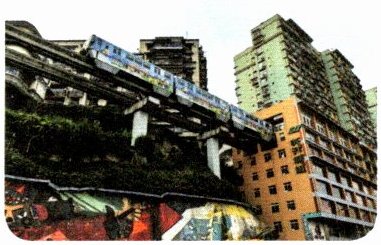 (2)示例:我站在李子坝站台上,目睹轻轨列车如巨龙般穿过大楼,那景象匪夷所思。楼体中段被凿出一条通道,轻轨车厢从中呼啸而过,车窗映出的灯光与楼内居民家的灯火交相辉映,仿佛列车在楼中“穿针引线”。楼下行人驻足拍照,惊叹这奇妙的建筑设计,列车与大楼融为一体,展现出重庆山城独特的魅力。重庆人太有因地制宜的智慧了!