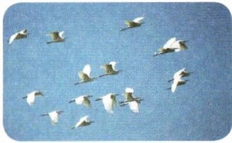 3. 观察 右图,根据提示为白鹭集体飞翔的场景写一段解说词。
