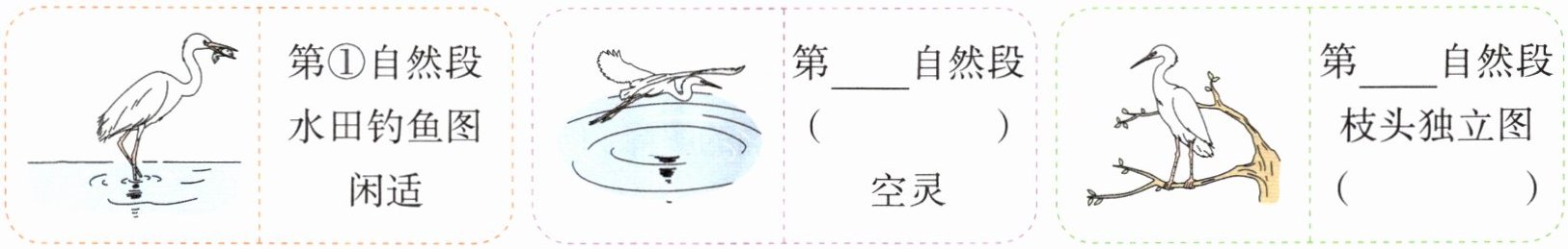 2 语文要素 下面 是龙一鸣根据语段内容拍摄 的三幅画面,请 你标上对应的段落,并补全图 注。