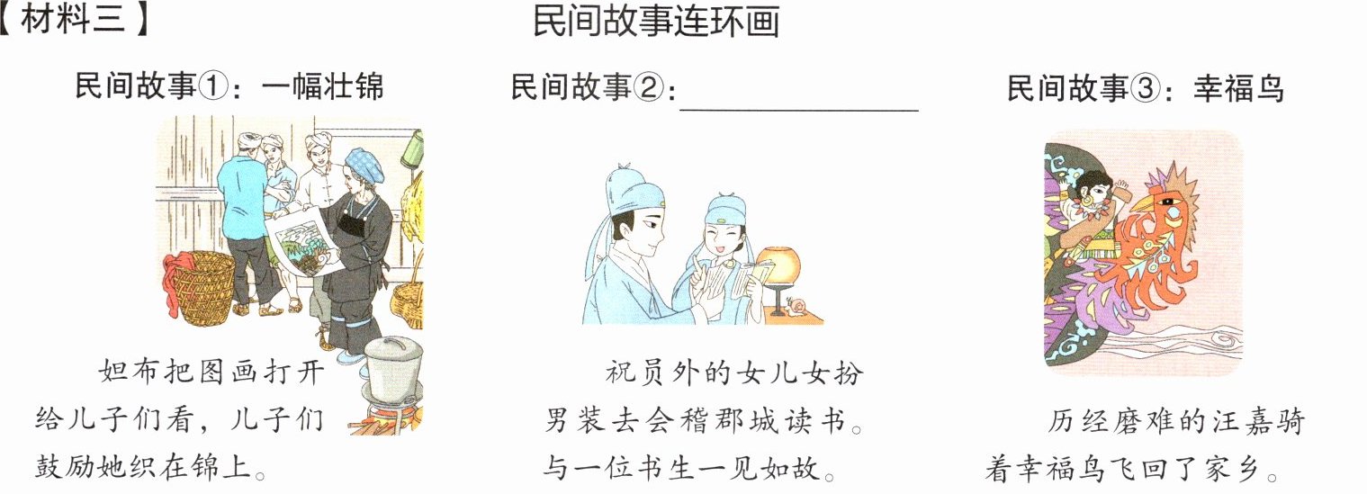 |民间故事①:一幅壮锦|民间故事②:____|民间故事③:幸福鸟|