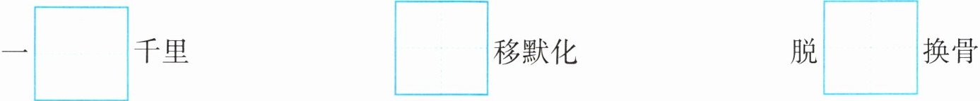 一$\overset{\mathrm{x}\mathrm{i}è}{□}$千里 $\overset{\mathrm{q}\mathrm{i}á\mathrm{n}}{□}$移默化 脱$\overset{\mathrm{t}ā\mathrm{i}}{□}$换骨