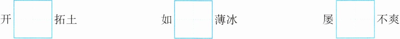 开$\overset{\mathrm{j}\mathrm{i}ā\mathrm{n}\mathrm{g}}{□}$拓土 如$\overset{\mathrm{l}ǚ}{□}$薄冰 屡$\overset{\mathrm{s}\mathrm{h}ì}{□}$不爽