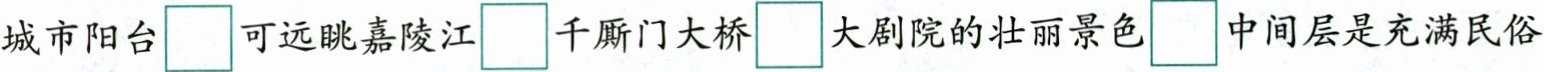 1.嵌 金碧辉煌 筑 不计其数 2.líng qiǎo lüè tī 3.,、、; 4.示例:夜幕低垂,洪崖洞崖壁上悬挂的串串红灯笼渐次亮起,宛如一条条火龙盘绕在峭壁之间。温暖的红色光晕映照着古老的吊脚楼,又在波光粼粼的江面上投下摇曳的倒影,与远处现代建筑的霓虹交相辉映,仿佛一幅流动的画卷。 5.A