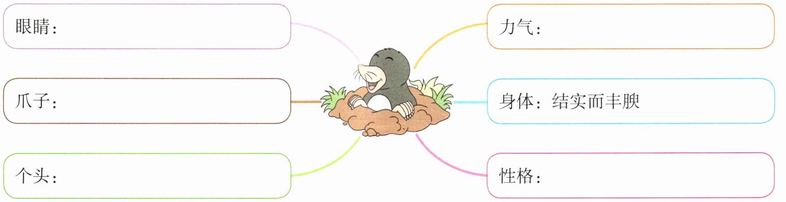 1. 你从文中获得了哪些关于鼹鼠的信息?补全思维导图。