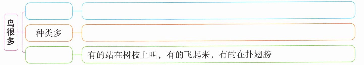 2. 第 1 自然段从哪些方面写了“鸟很多”?填写思维导图。