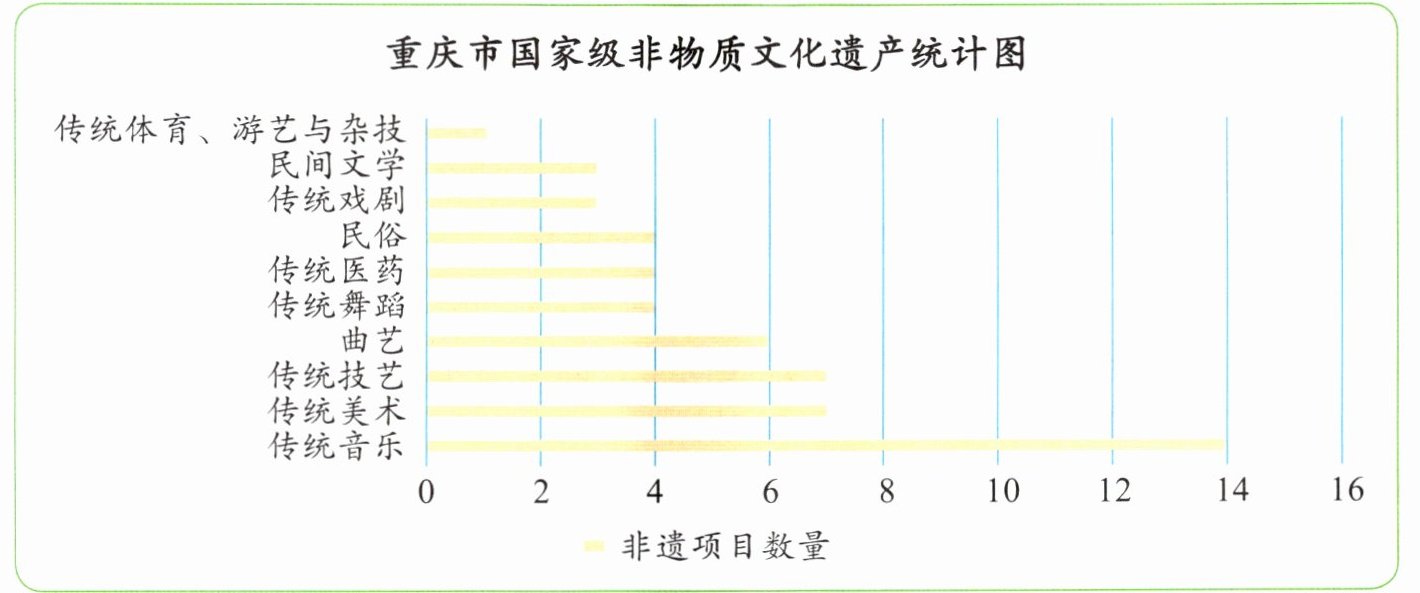 【材料二】重庆目前共有国家级非物质文化遗产53项,涵盖许多门类,具体如下图所示。