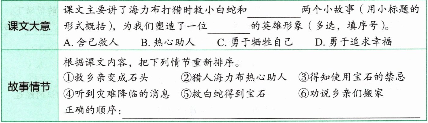 6 救乡亲变石头 A B C ②⑤③④⑥①