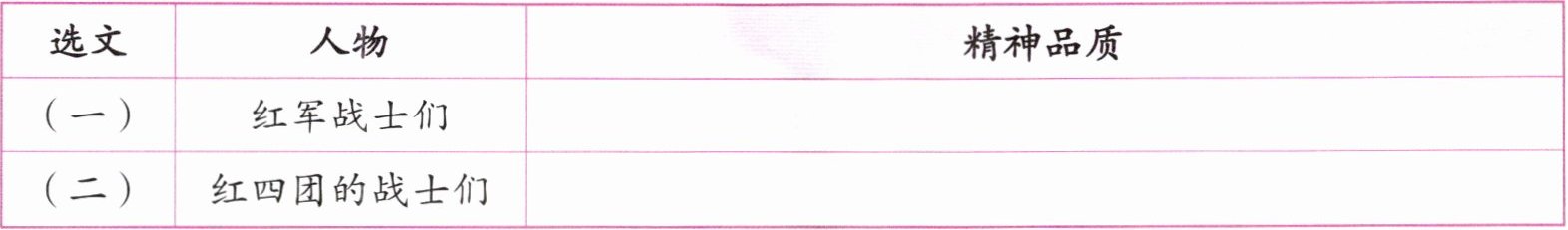 | 选文 | 人物 | 精神品质 |