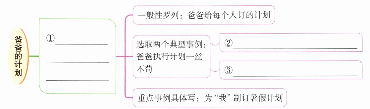 一、阅读《爸爸的计划》,补充思维导图。(目标:506)