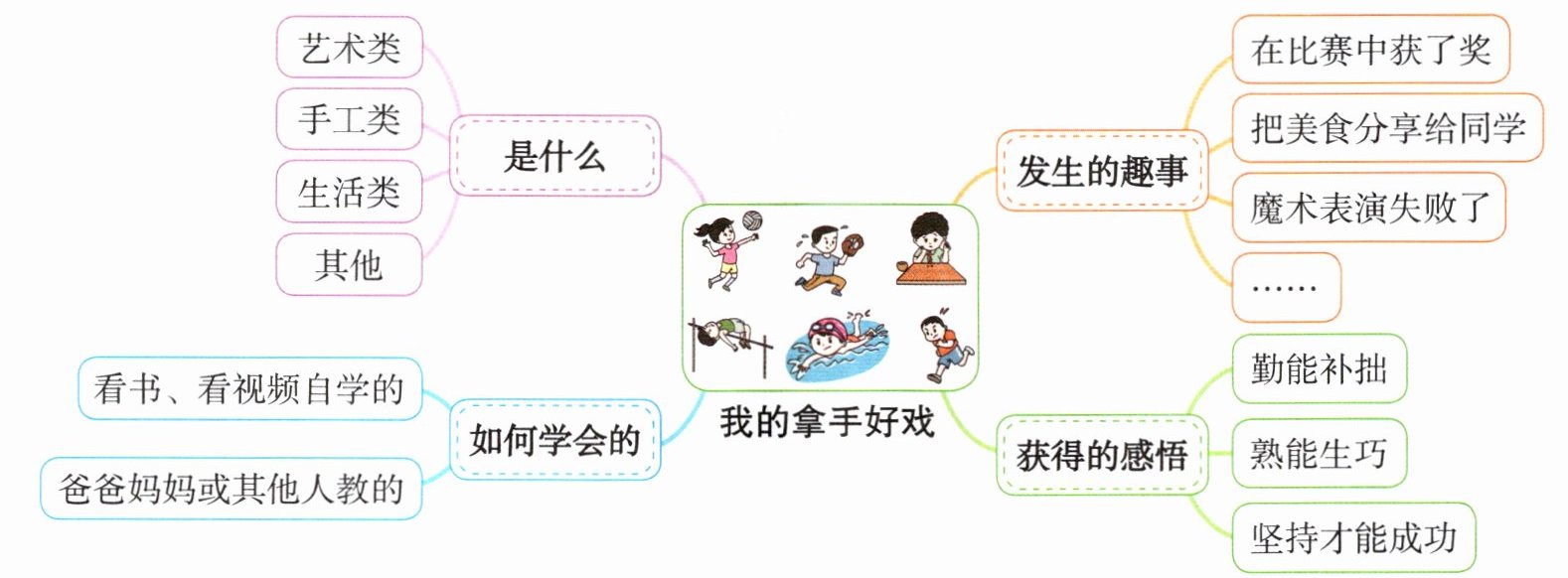 初试身手 品读语段,照样子写一段话,介绍你的拿手好戏,把重点部分写具体。