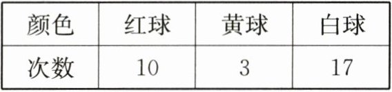 |颜色|红球|黄球|白球|