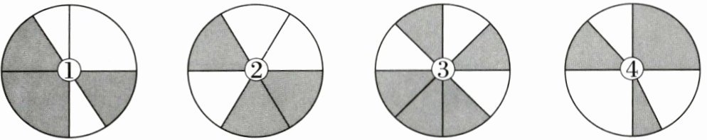 4. 在一次投掷活动中,李老师设置了四种不同的靶子(如下图),投中阴影部分区域(涂色部分)即为获胜,获胜可能性最大的是(