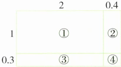 (2)在计算$1.3×2.4$时,依依的方法是“$1.3×2.4=1×2+0.3×0.4$”,她验算时发现错了,她计算错误的原因是没有计算图中的(