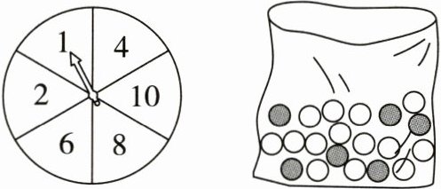 5. 游乐园一个摊位的游戏如下:先转动转盘,如果指针停在单数位置,那么玩的人就可以从袋子里摸出一个弹珠,摸出深色的弹珠就能得到奖品。转盘和袋子里的弹珠如下图所示。淘淘玩了一次这个游戏,他( )得到奖品。