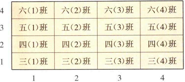 3.下面是某校三至六年级各班在礼堂观看文艺演出的位置排列图。