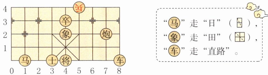 4.融合题 中国象棋是中华民族的文化瑰宝,在横十道竖九道的棋盘上,用90个交叉点确定棋子的位置。下图是中国象棋棋盘的一部分。