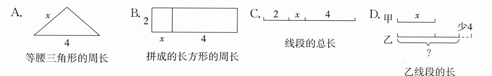 2. 下列各图中,可以用“$ 2x + 4 $”表示的是( )。